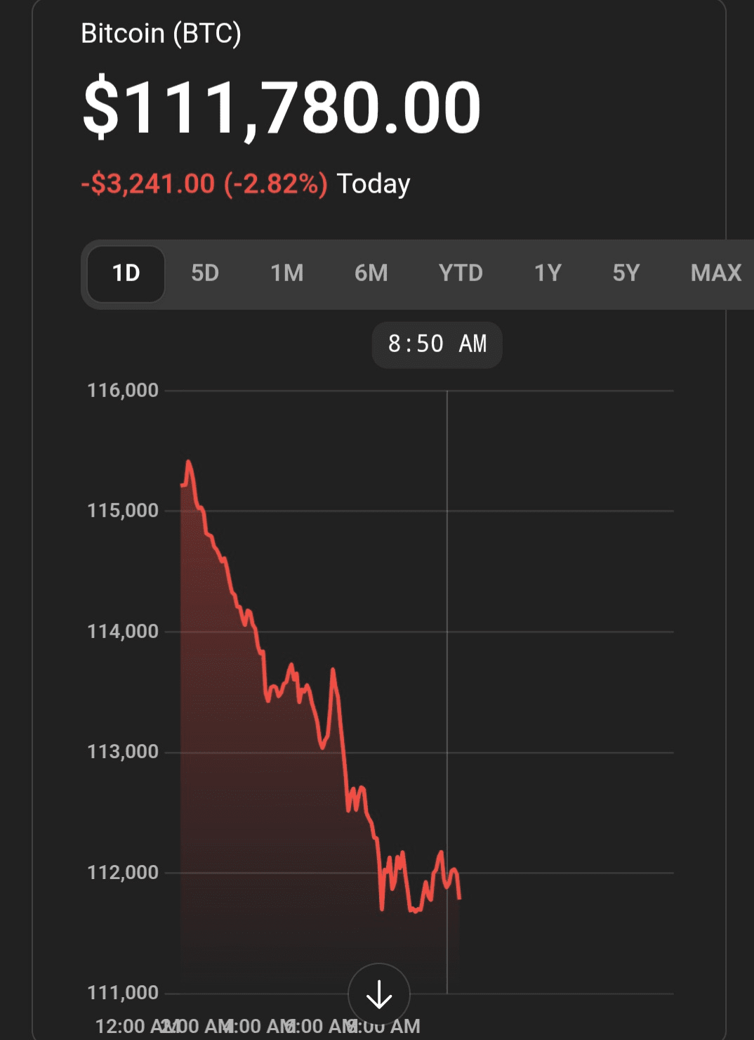 #Biction ist kürzlich unter $BTC 112.000 gefallen, während die Rede von Fed-Chef Powell erwartet wird, die die allgemeine Marktsentiment beeinflussen könnte.