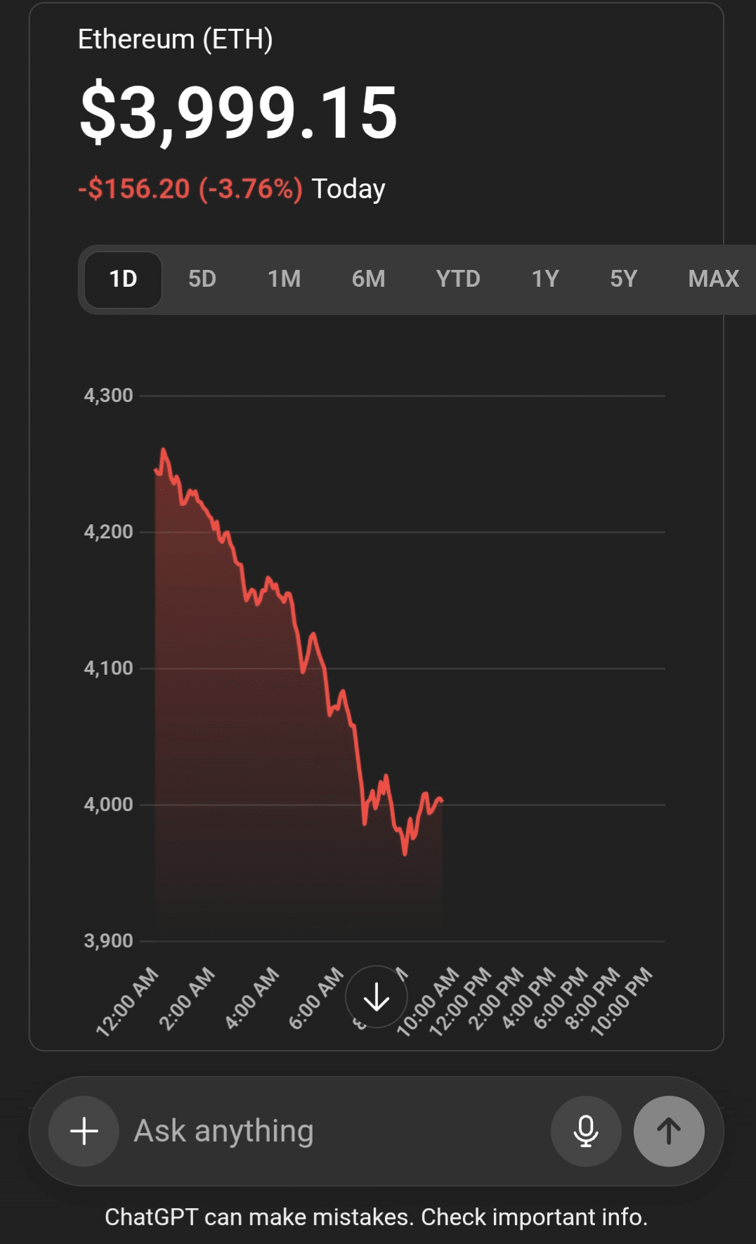 Die gesamte Marktkapitalisierung für Kryptowährungen liegt bei etwa 3,89 Billionen USD, ein Anstieg von ~3,6% in den letzten 24 Stunden.