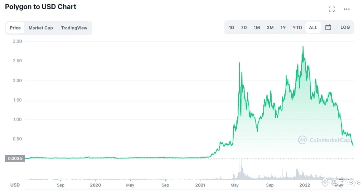 The token, still named MATIC, saw its value skyrocket, rising from around $0.018 at the beginning of the year to an all-time high (ATH) of $2.92.