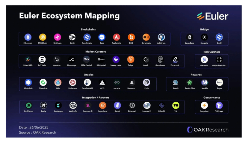 Integrationspartner und Entwickler: Euler arbeitet mit vielen Anwendungen zusammen und bietet SDK/Kit (EDK/EVK) an, um es Entwicklern zu erleichtern, Vaults zu implementieren.