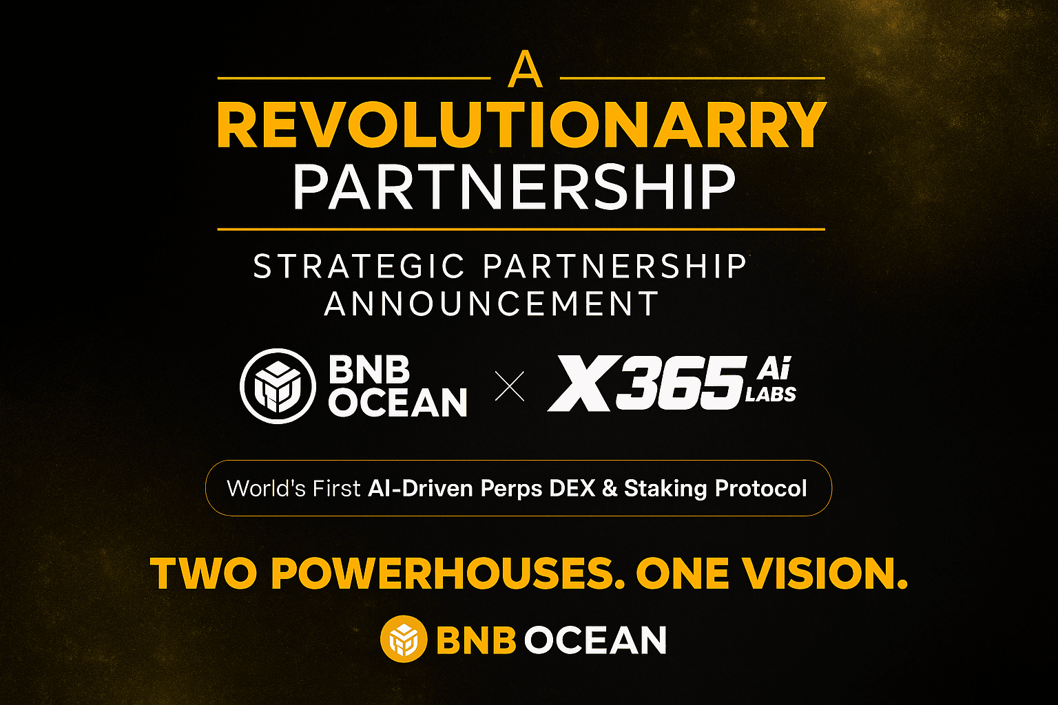 Diese Zusammenarbeit vereint die Expertise von BNB Ocean in dezentralen Handels- und Liquiditätslösungen mit der nächsten Generation künstlicher Intelligenz-Infrastruktur von X365.Ai und schafft ein leistungsstarkes Ökosystem, das Benutzern weltweit intelligenter, schneller und transparenter Finanzerfahrungen bietet.