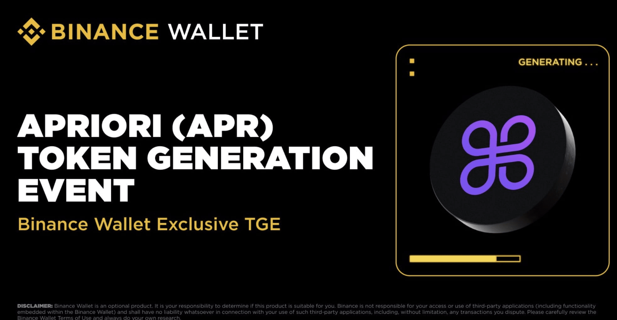 Die Binance Wallet hat offiziell den Start ihres 41. exklusiven Token Generation Events (TGE) angekĂŒndigt, bei dem aPriori (APR) als das vorgestellte Projekt in dieser Runde eingefĂŒhrt wird.