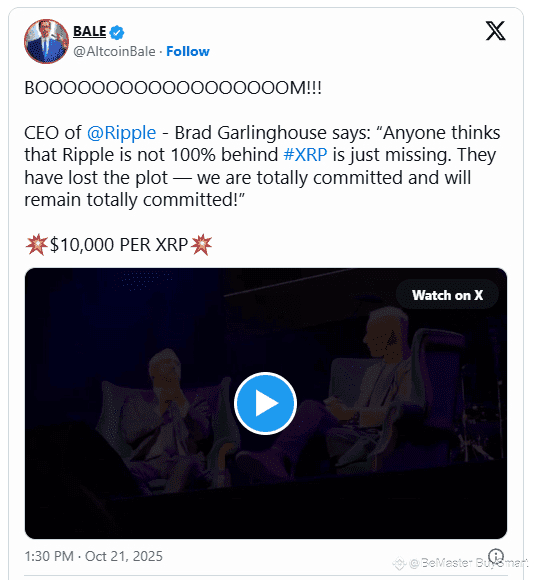 Bale, der den Interviewclip auf X veröffentlichte, glaubt, dass die dauerhafte Unterstützung von Ripple XRP zu einem Wert von 10.000 US-Dollar führen könnte. Seine Ansicht spiegelt die langjährige Optimismus in der Community wider, dass XRP’s Rolle bei grenzüberschreitenden Abrechnungen und institutionellen Finanzen im Laufe der Zeit erheblichen Wert freisetzen könnte.