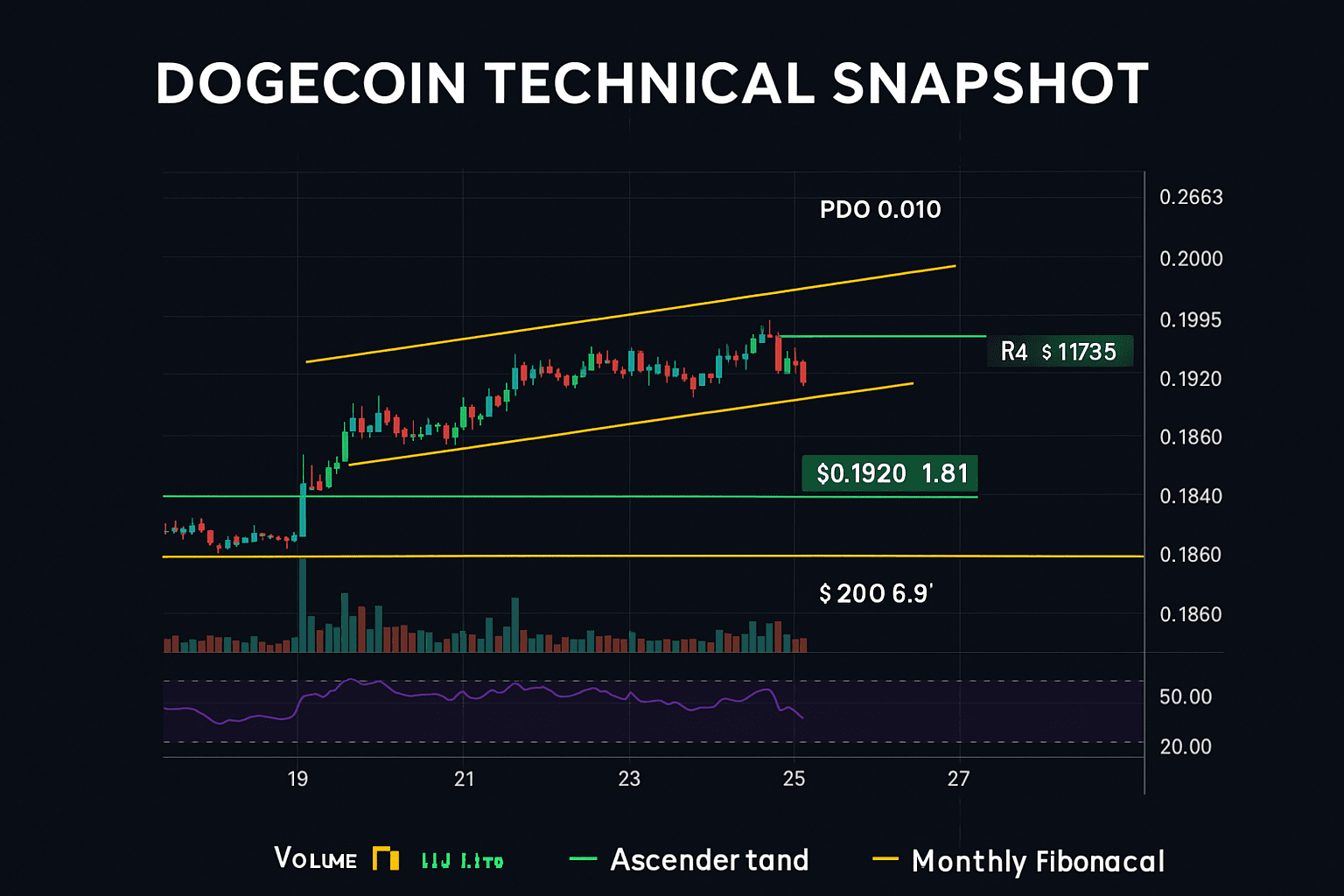 Stündliche Daten zeigen höhere Tiefs bei $0.1914, $0.1916 und $0.1920, was einen aufsteigenden Kanal umreißt, der durch institutionelles Kaufvolumen unterstützt wird.
