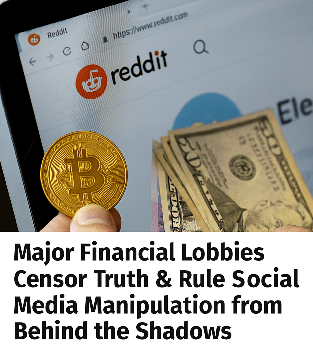 In der Zwischenzeit sind Finanzlobbys dafür bekannt, Medienunternehmen zu finanzieren, Influencer zu sponsern und die öffentliche Meinung durch gezielte Inhaltsstrategien zu beeinflussen. Die Grenze zwischen organischem Diskurs und bezahltem Einfluss verschwimmt zunehmend. Diese Manipulation erstreckt sich über Reddit hinaus – sie betrifft YouTube, X (Twitter) und sogar Mainstream-Nachrichtsportale, wo abweichende Stimmen oft übertönt oder algorithmisch unterdrückt werden.