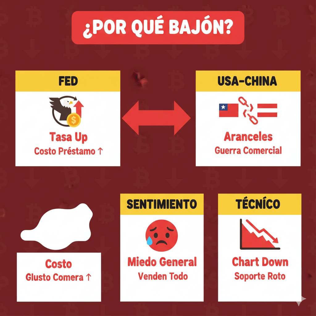 Handels Spannungen (USA-China Zölle): 100% Zölle auf China krypto-bezogene Dinge, reduziert Liquidität (fließendes Geld) – weniger Käufer, Preise fallen. Real: $20B Crash am 11. Okt. deswegen.