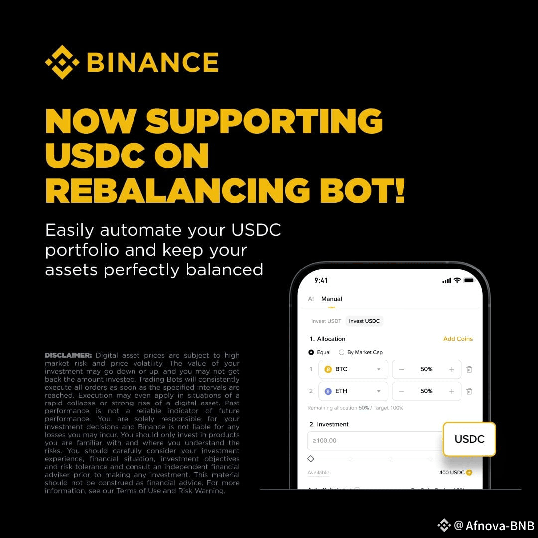 Big news for your portfolio management! You can now use USDC with the Binance Rebalancing Bot!