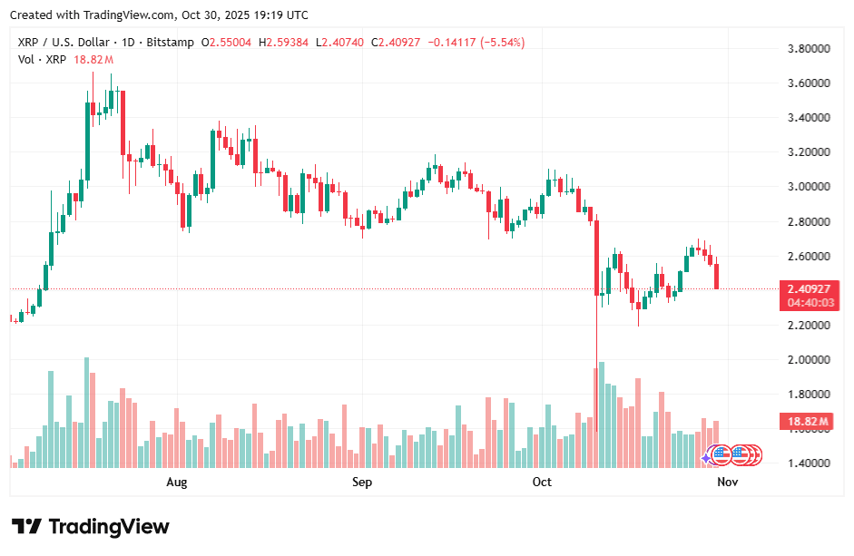 Der Krypto-Markt zeigt wieder Anzeichen erneuter Volatilität. Der XRP bleibt über der Marke von 2,40 US-Dollar stabil, selbst bei der Verlangsamung des breiteren Trends.