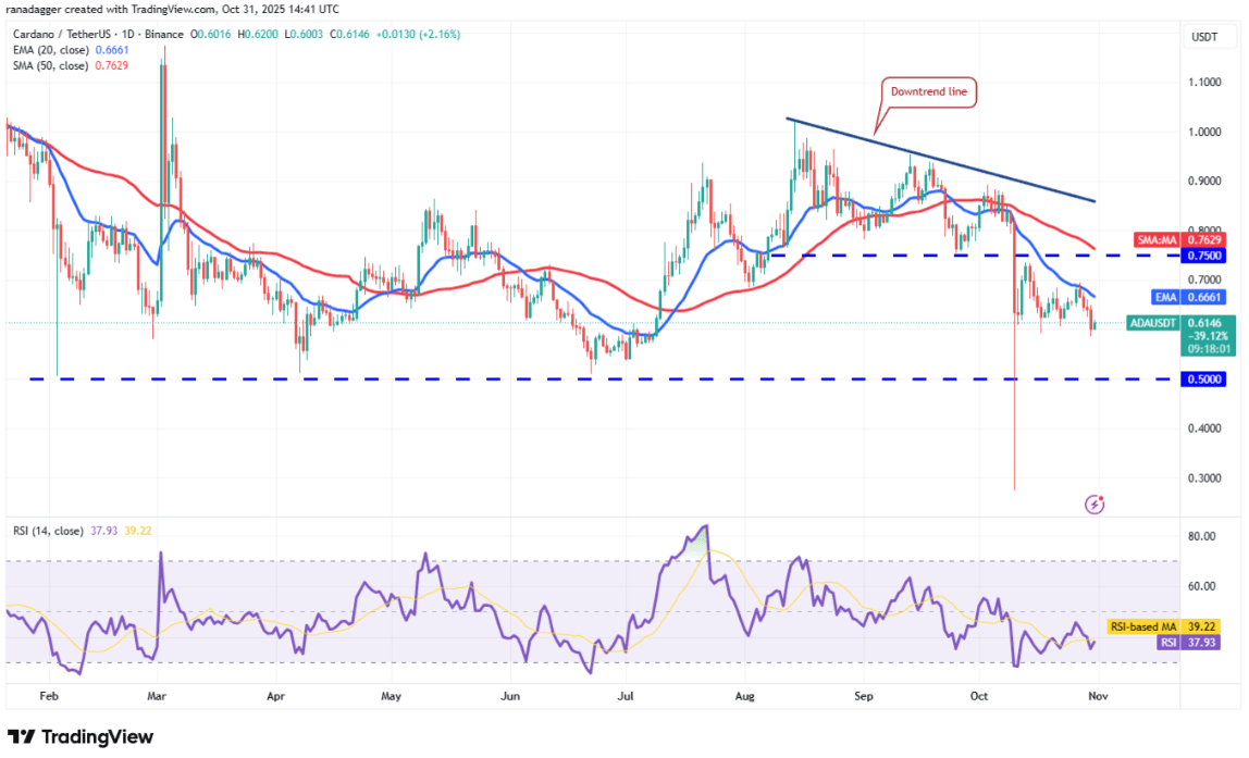 Andererseits, wenn der Preis über die 20-Tage-EMA-Linie bei 0,66 USD ausbricht und schließt, würde das darauf hinweisen, dass die Bären allmählich die Oberhand verlieren. Dann könnte der Cardano-Preis auf 0,75 USD – den zuletzt gebrochenen Punkt – und weiter zur Abwärtstrendlinie steigen.