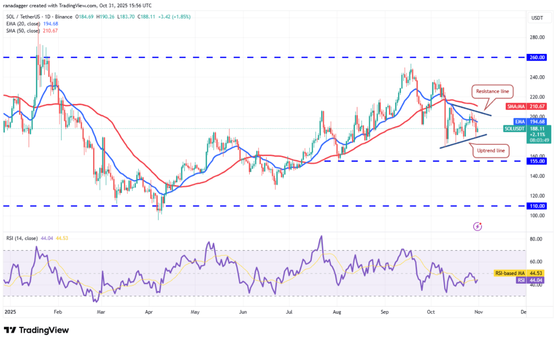 Im Gegensatz dazu könnte SOL, wenn es von der Aufwärtstrendlinie abprallt und die 20-Tage-EMA-Linie (194 USD) überschreitet, weiterhin eine Zeit lang innerhalb des Dreiecks schwanken. Die Bullen würden die Oberhand zurückgewinnen, wenn der Preis über die Widerstandslinie des Modells ausbricht.