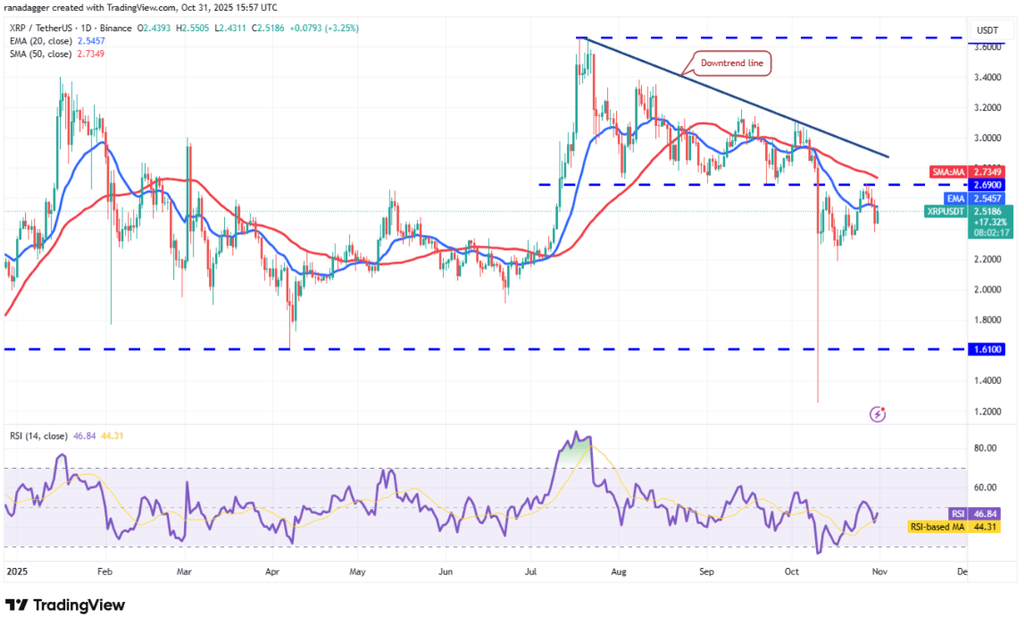 XRP ist am Donnerstag unter die 20-Tage-EMA-Linie (2,54 USD) gefallen, was darauf hinweist, dass die Bären die Oberhand haben.