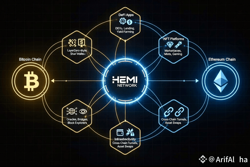 Unified Bitcoin + Ethereum architecture: Rather than treating Bitcoin and Ethereum as separate ecosystems, Hemi treats them as parts of a unified “super-network”. Their goal: let developers and users tap Bitcoin’s security and Ethereum’s programmability in one place.