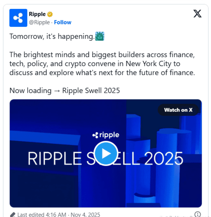 Die Wartezeit ist vorbei — Ripple Swell 2025 beginnt morgen in New York City. Das ist nicht nur eine weitere Krypto-Veranstaltung… es ist der Moment, auf den XRP-Inhaber gewartet haben.