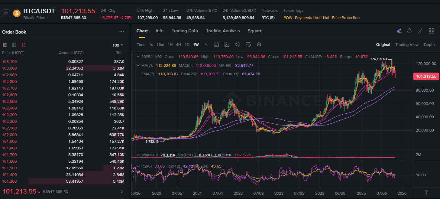 Der Bitcoin ist seit seinem historischen Höchststand von 126.199 US-Dollar im Juli um 19,7 % gefallen und wird jetzt zu 101.223 US-Dollar gehandelt. Während die Angst den Markt dominiert, bringt das Cryptograma die konkreten Daten, die diesen Rückgang erklären - und zeigt, warum dies der strategische Moment sein könnte, auf den intelligente Investoren gewartet haben.