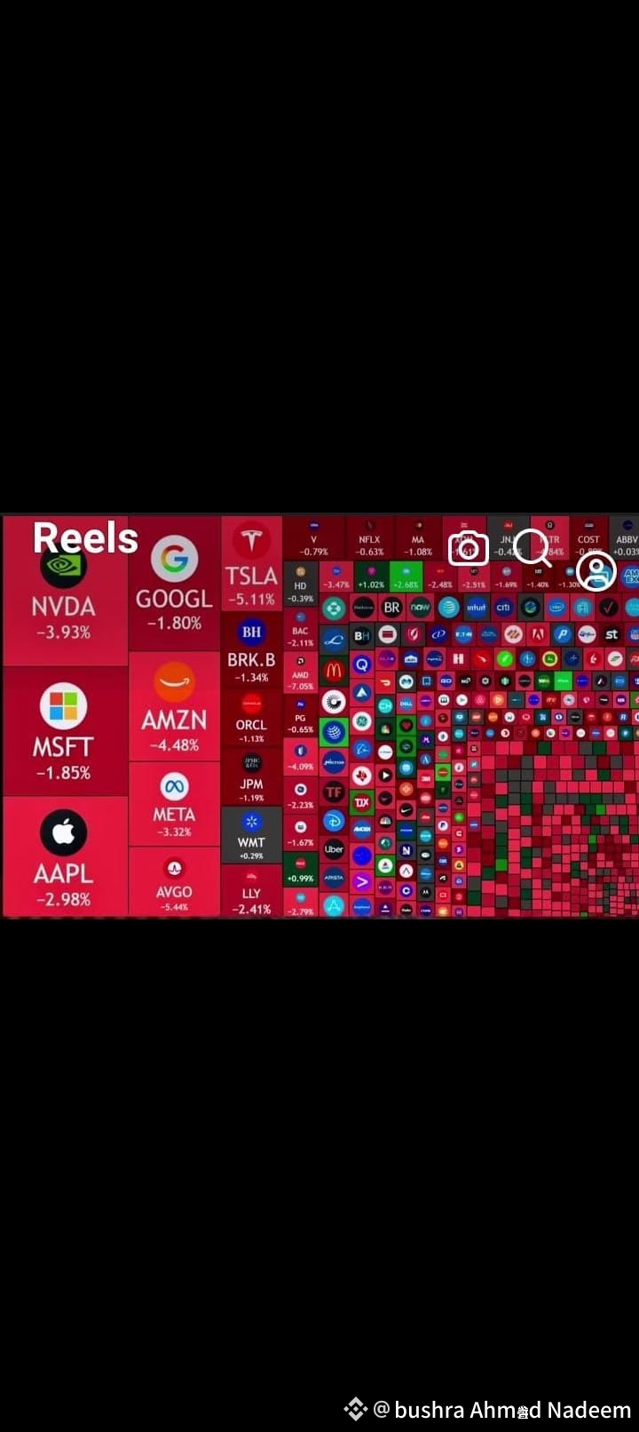 Die globalen Märkte reagierten sofort — die Wall Street blutete rot 🩸, wie in der heutigen Heatmap zu sehen ist, mit Giganten wie Tesla (-5,1%), Amazon (-4,4%) und NVIDIA (-3,9%), die stark einbrachen.