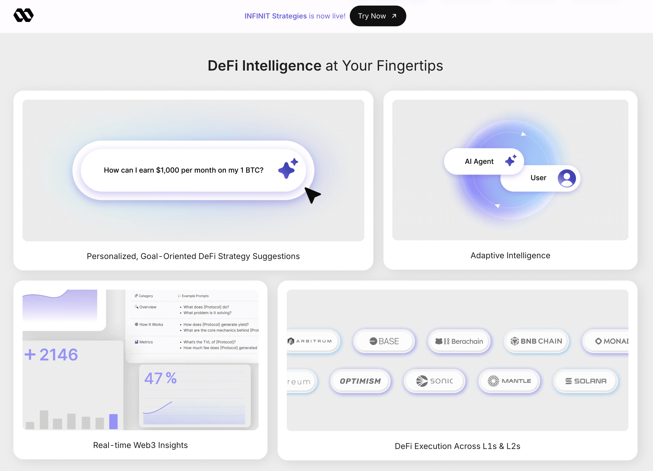 Insgesamt ermöglicht INFINIT durch den heute populären Ansatz von AI-Agenten, dass auch normale Nutzer Zugang zu Expertenstrategien erhalten, während sie die vollständige nicht-verwahrte Kontrolle behalten und so für uns alle eine nahtlose DeFi-Erfahrung schaffen.