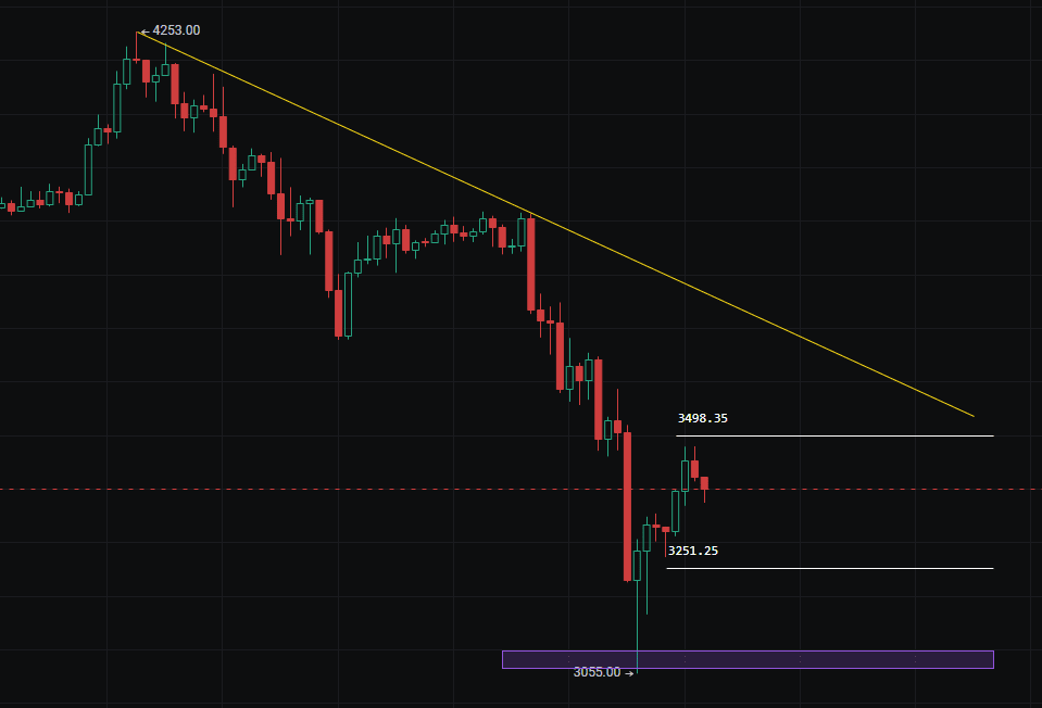 Was die aktuelle Marktsituation von Bitcoin betrifft, so hat sich im Tagesrahmen ein falscher Durchbruch mit einem Rückgang über dem vorherigen Hoch gebildet, gefolgt von einem Durchbruch der Aufwärtstrendlinie und dem Durchbrechen der Unterstützung-Widerstand-Austauschlinie. Außerdem hat sich eine vollständige Bewegung mit kontinuierlicher Abwärtsbewegung von Hochs und Tiefs ergeben, was den Übergang der Marktstruktur von bullisch zu bärisch abgeschlossen hat. Die Möglichkeit einer direkten Umkehr vom aktuellen Doppelboden ist sehr gering, daher tendiere ich eher zu einem zweiten Test des Bodens oder sogar zu einem Durchbruch dieser Idee.