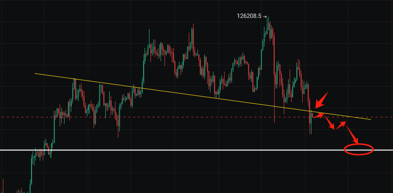 Wenn der Preis unter das vorherige Tief von 98577 fällt, ist der bärische Trend vollständig abgeschlossen. Ein falscher Durchbruch könnte einen 2B-Strukturabsturz verursachen, und das Durchbrechen der Aufwärtstrendlinie könnte eine zweite Bestätigung darstellen. Wenn die Unterstützungslinie des Käfigbodens durchbrochen wird, könnte sich der Trend vollständig bilden, obwohl der Preis möglicherweise in der Nähe von 94000 eine gewisse Rückkehr zeigt. Dies ist der Schlüsselbereich für den Austausch von Unterstützung und Widerstand, und es ist auch die 61,8-Position der zweiten Aufwärtskorrektur. Nach dem dreiteiligen Rückgang im Tagesrahmen wird der Markt eine Korrektur und Konsolidierung durchführen. Daher sollten wir nach dem Rückgang zunächst diese Linie im Auge behalten. Alles hängt davon ab, dass der Preis unter die Abwärtslinie unter 99000 fällt.