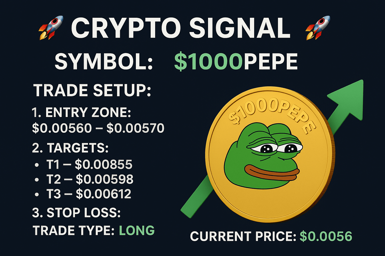 📸 Visual: Bild des $1000PEPE Coins mit einem grünen Aufwärtspfeil, der starkes bullisches Potenzial und Wachstumsstimmung zeigt! 🌱💹