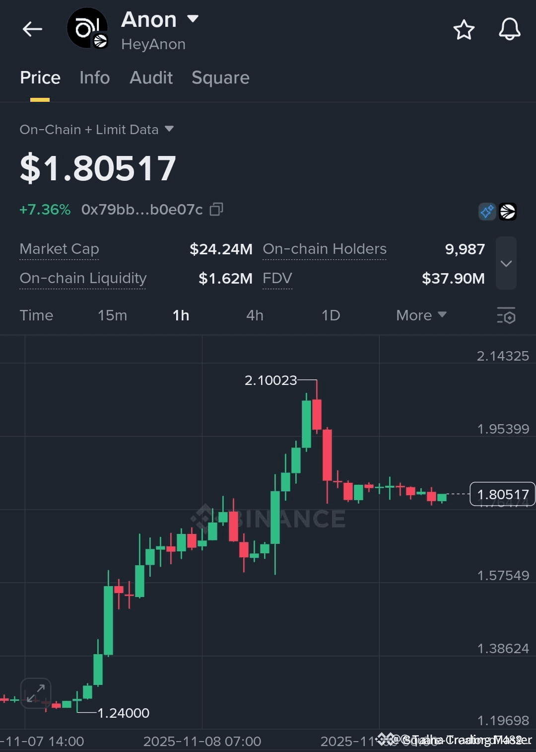 يشهد رمز $ANON تداولًا عند مستوى 1.805 دولار بارتفاع %7.36 خلال آخر 24 ساعة.
