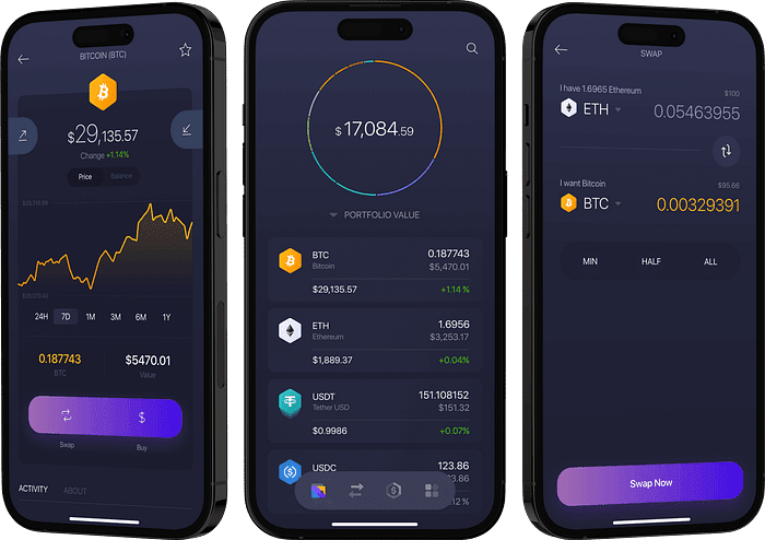 Token-Tausch und NFT-Verwaltung: Integrierte Tauschmöglichkeiten und eine bequeme NFT-Ansicht.