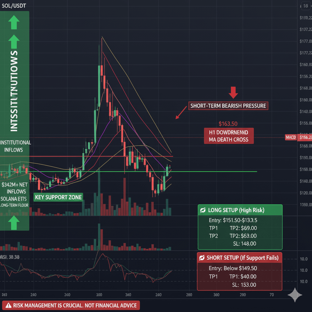 Massive institutionelle Nachfrage: SOL-ETFs haben erhebliche Nettoumfälle verzeichnet (in den letzten Tagen/Wochen wurden über 323 Millionen bis 421 Millionen USD gemeldet). Dieser institutionelle Kapitalzufluss ist eine starke langfristige Validierung und stützt den Preis.