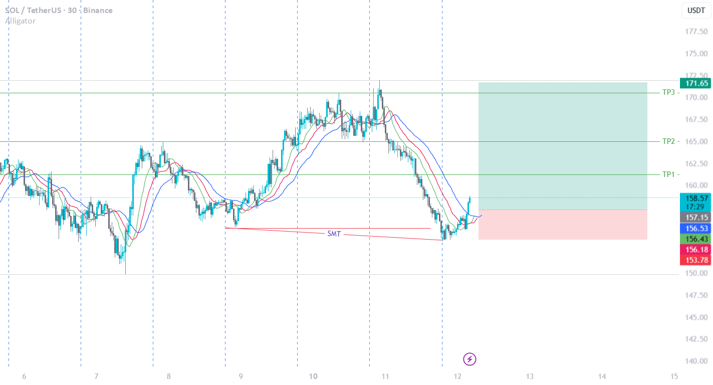 Stop-Loss: Unter 156,10 (Alligator-Clusterbruch)