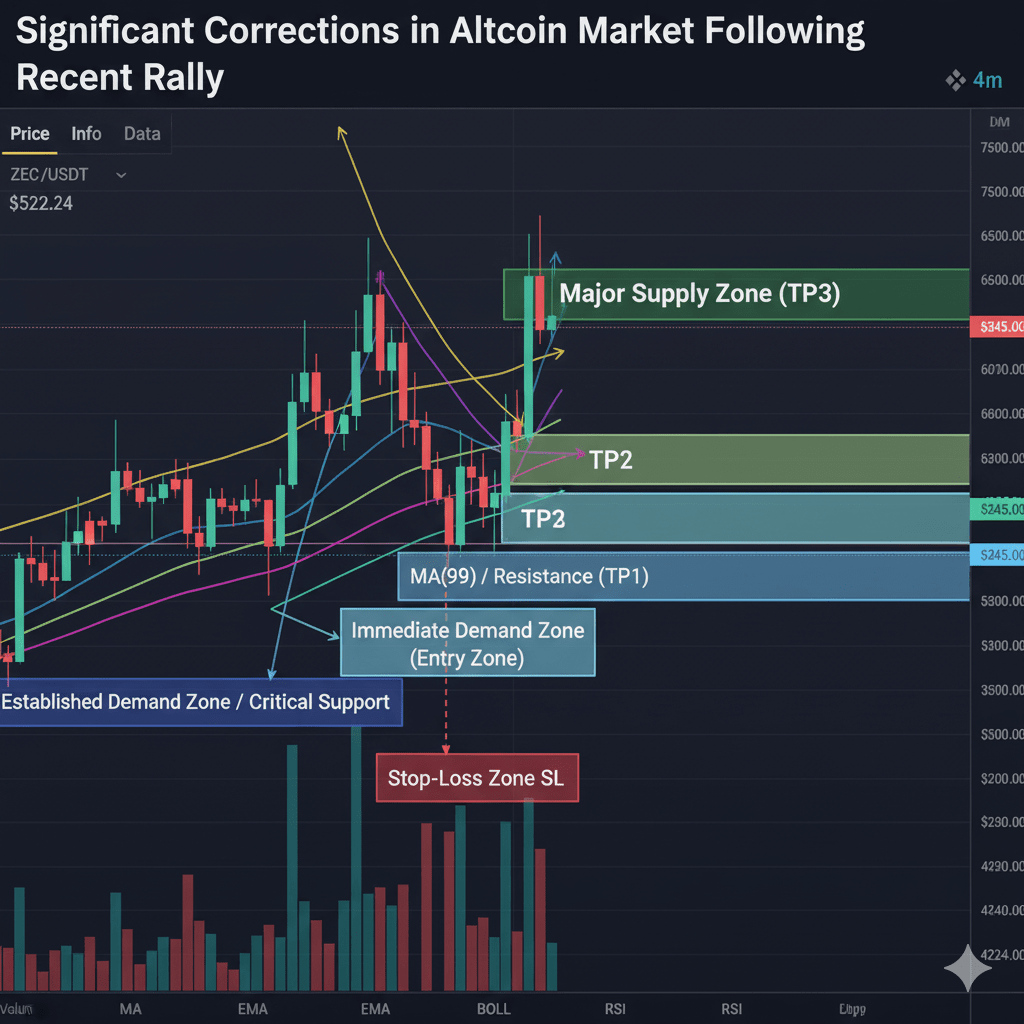 Das ZEC/USDT-Diagramm hebt einen klaren Wandel in der Marktbeherrschung hervor, der von einer bärischen Korrektur zu einer kurzfristigen bullischen Akkumulation übergeht.