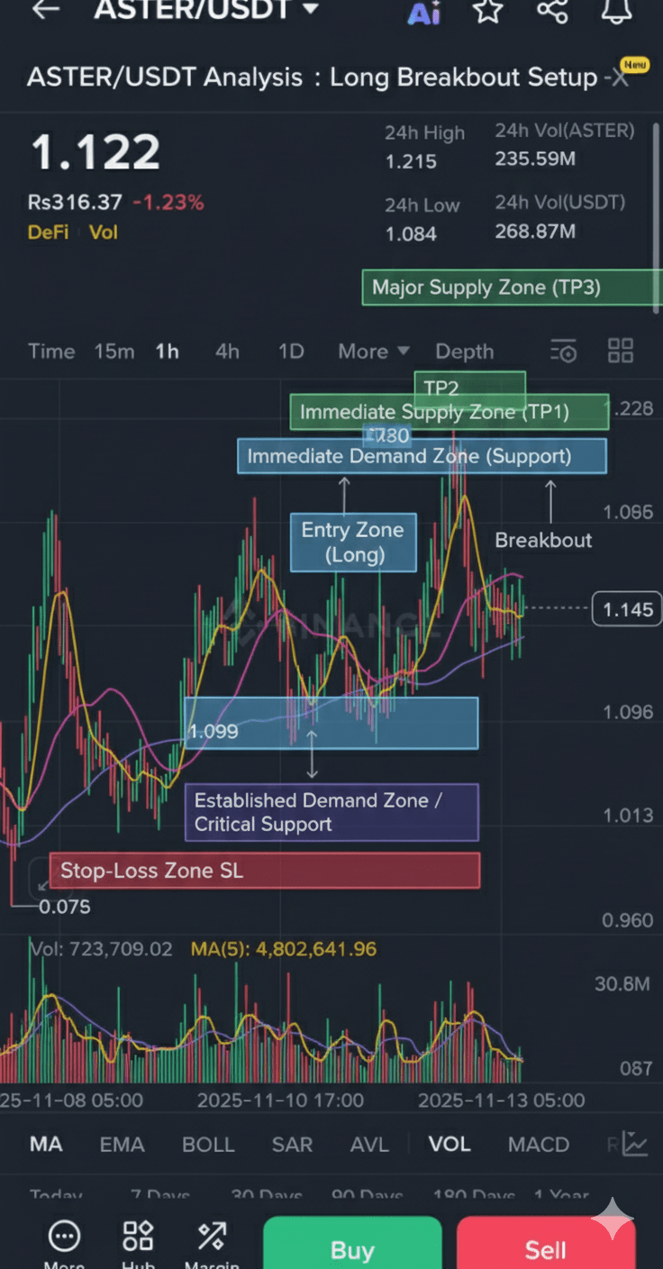 ⚙️ Technische Analyse (1H-Chart: ASTER/USDT)