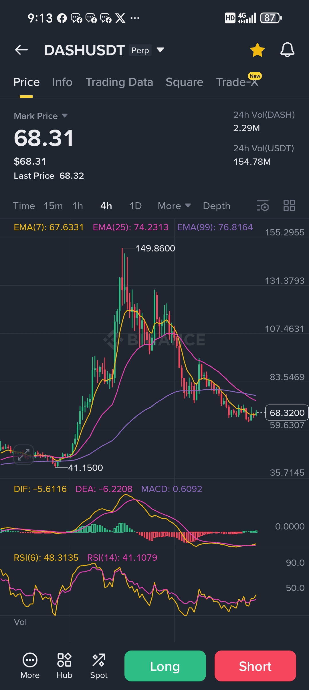 Wenn $DASH es schafft, über der Unterstützung von $67 zu bleiben, und der MACD einen bullischen Kreuzungspunkt bestätigt, könnte der nächste Schritt eine starke Erholungsrallye in Richtung $83–$90 sein.