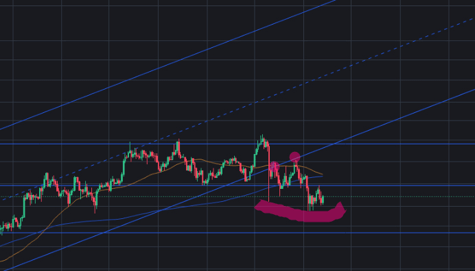 Kommen wir zurück zu Bitcoin. Jetzt haben wir genau diese Situation - der aufsteigende Kanal wurde nach unten durchbrochen 😭. Außerdem gab es bereits einen Retest: Der Preis ist von unten zurück zum Kanal gekommen und hat abgeprallt. Jetzt spielt der Kanal die Rolle des Widerstands.