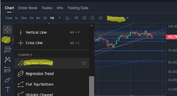 Binance hat ein sehr praktisches Werkzeug, den Parallel Channel. Lassen Sie uns dies im BTC-Diagramm testen.