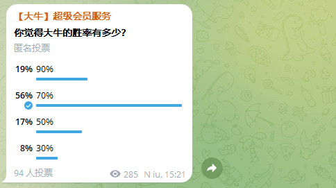 Mehr als die Hälfte der Freunde glaubt, dass die Gewinnwahrscheinlichkeit von Big Bull über 70 % liegt. Tatsächlich sagt eine einzelne Gewinnwahrscheinlichkeit wenig aus. Wer den Handelsansatz von Big Bull kennt, weiß, dass bei jeder Position das Gewinn-Verlust-Verhältnis über 1,5 liegt. Bei einem so hohen Gewinn-Verlust-Verhältnis und gleichzeitig hoher Gewinnwahrscheinlichkeit ist die Qualität dieser Strategie offensichtlich.