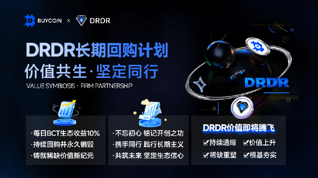 Am 14. November 2025 gab die weltweit bekannte Plattform für digitale Vermögenswerte BUYCOIN die Einleitung des Rückkaufplans für die DRDR-Deflation bekannt. Diese Maßnahme erregte breite Aufmerksamkeit im Bereich der digitalen Vermögenswerte. Der Kern des Plans besteht darin, dass die Plattform, unter der Voraussetzung, den Wert ihres Kern-Tokens BCT zu sichern, täglich 10% der ökologischen Erträge für den marktgerechten Rückkauf von DRDR und dessen dauerhafte Vernichtung verteilt, bis die Gesamtmenge von DRDR stabil bei 21 Millionen liegt.