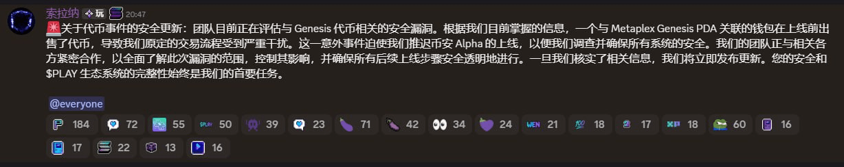 Nachdem wir die Token-Informationen verstanden haben, schauen wir uns an, warum die Token-Ausgabe verzögert wurde. Laut den offiziellen Twitter-Aussagen scheint es ein Sicherheitsproblem mit den Tokens gegeben zu haben.