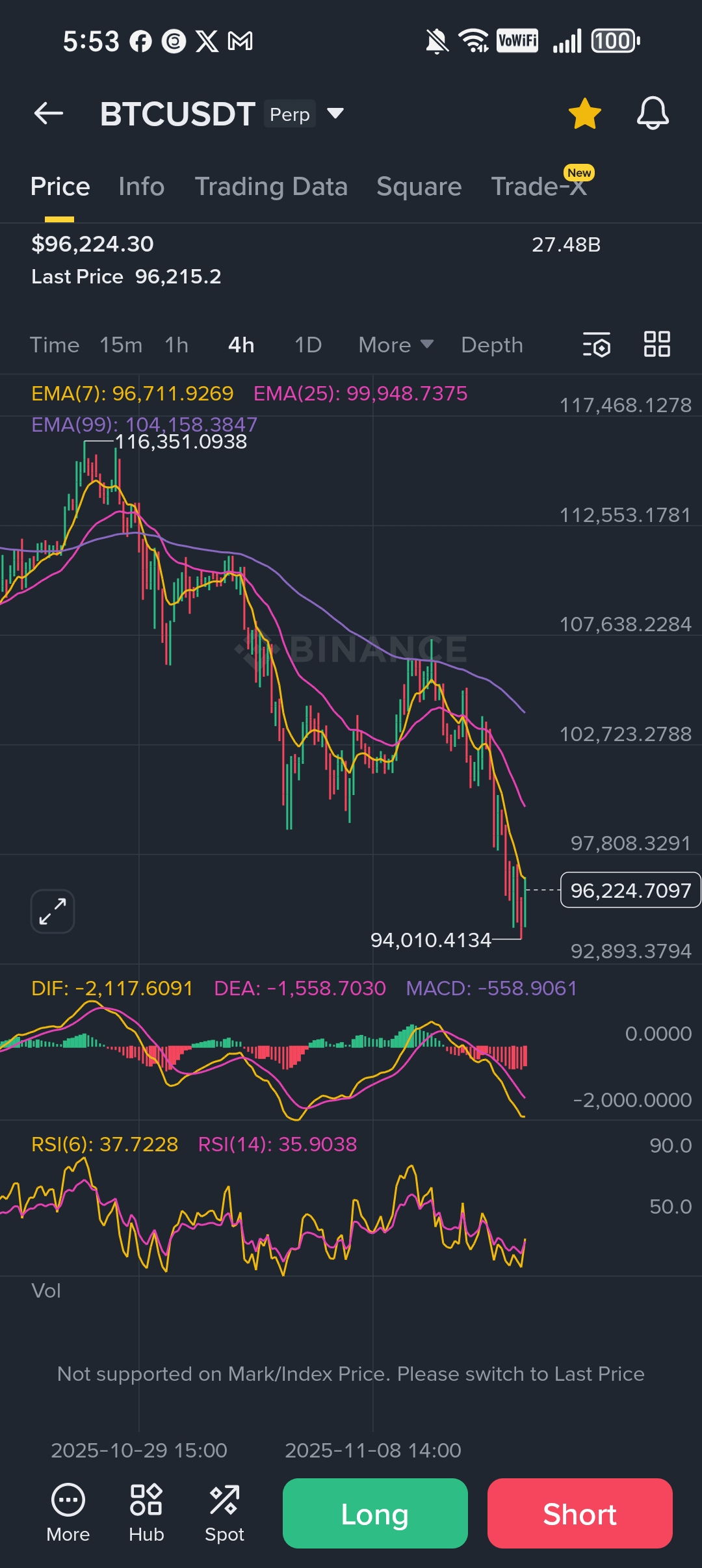 $BTC könnte $94k–$92k erneut testen, bevor ein potenzieller Bounce erfolgt.