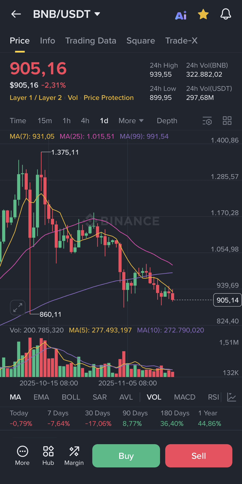 Der Schmerz im Kryptomarkt ist real, und selbst eine Kraft wie $BNB Token ist nicht der roten Welle entkommen. BNB hat kürzlich die wichtige psychologische Unterstützung von $1.000 durchbrochen, was viele Händler nervös gemacht hat.