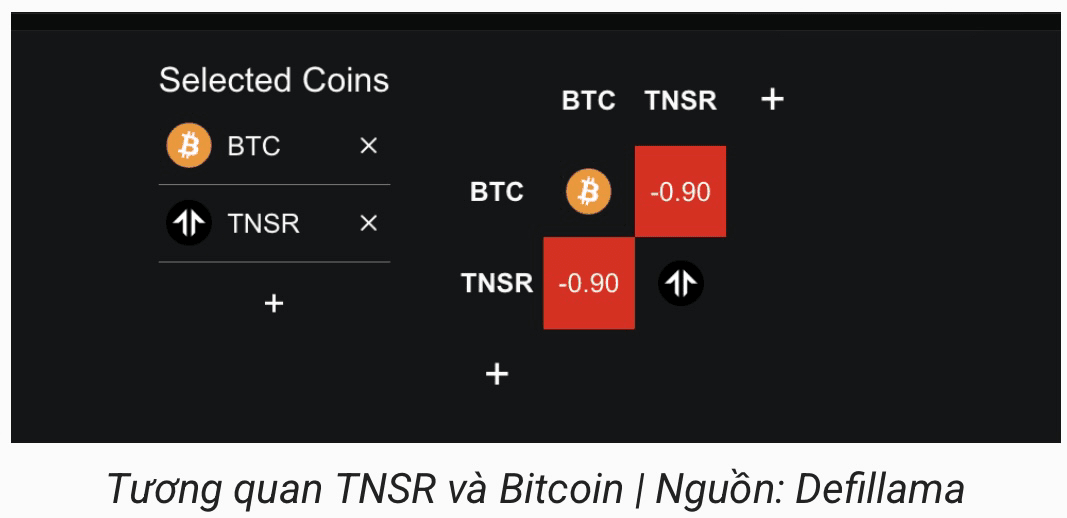 Tensor ist ebenfalls ein bemerkenswerter Name, wenn Bitcoin das Risiko hat, unter 80.000 USD zu fallen, dank einer starken kurzfristigen negativen Korrelation mit BTC (Pearson-Koeffizient der letzten 7 Tage -0,90). Dies zeigt, dass TNSR normalerweise im Preis steigt, wenn Bitcoin fällt.