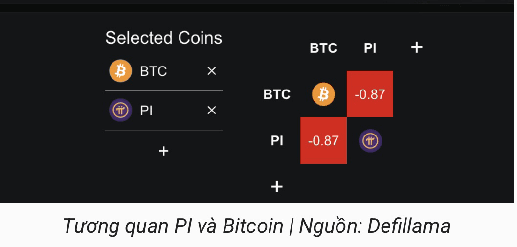 Ein herausragender Faktor ist die negative Korrelation von -0,87 in den letzten 7 Tagen mit Bitcoin, was es Pi Coin oft ermöglicht, im Preis zu steigen, wenn BTC fällt. Diese Eigenschaft macht PI zu einer effektiven Absicherungslösung in Zeiten volatiler Märkte.