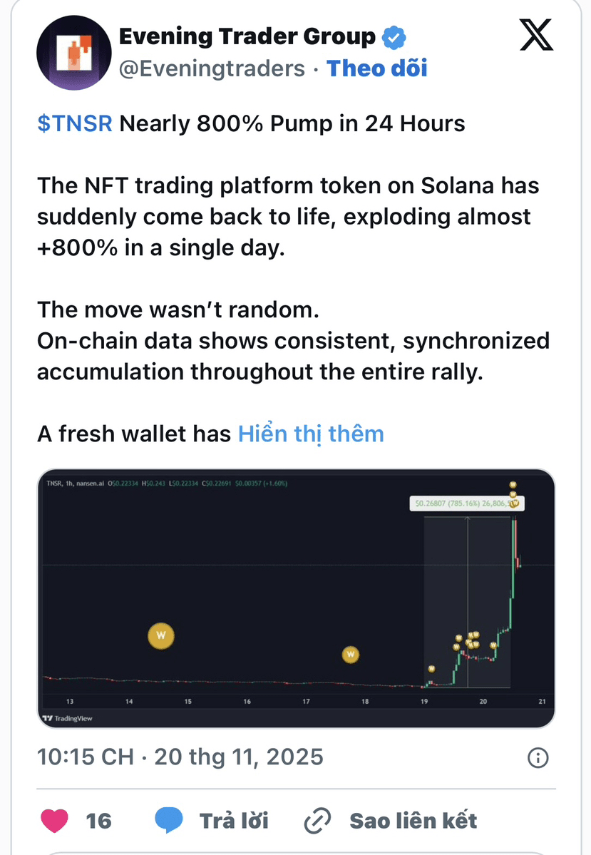Die jüngsten Entwicklungen stärken diese Einschätzung: Tensor ist in der letzten Woche um mehr als 340% gestiegen, trotz des allgemeinen Marktrückgangs. Auffällig ist, dass eine neue Brieftasche kontinuierlich mehr als 16 Millionen TNSR während des Preisanstiegs akkumuliert hat, was die Aufwärtsdynamik unterstützt, obwohl die Aktivität auf der NFT-Plattform von Tensor weiterhin schwach ist.