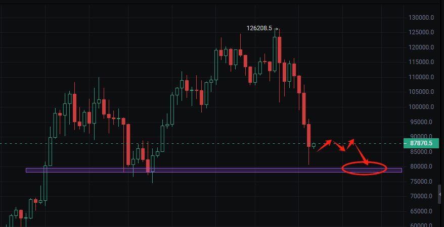 Viele haben bereits seit langem die Tiefststände erfasst. Vielleicht bringt die Erholung kurzfristige Gewinne, doch das gilt nur für die kurze Sicht. Denken Sie nicht, dass der Preis von 90.000 als Boden gilt; vielleicht ist dies nur der Beginn einer weiteren Abwärtsbewegung. Dieser Abwärtstrend könnte die Vorstellungskraft vieler übertreffen. Kleinanleger werden ihre Verluste nicht mehr aushalten und aussteigen, auch Institutionen ziehen sich zurück. Die sogenannten Langfristanleger sind nichts anderes als ein Slogan, den man nur im Aufwärtstrend schreit. Wenn die echte Prüfung kommt, kann kaum jemand durchhalten. Das ist die menschliche Natur, ein unveränderlicher Gesetz der Märkte. Ist die Marktsituation jetzt wirklich in extremer Panik? Ich denke nicht. Es gibt immer noch viele, die extrem optimistisch sind. Solange die letzte Verteidigungslinie nicht durchbrochen wird, können diese falschen Glaubenswürdigen nicht ausgewaschen werden.