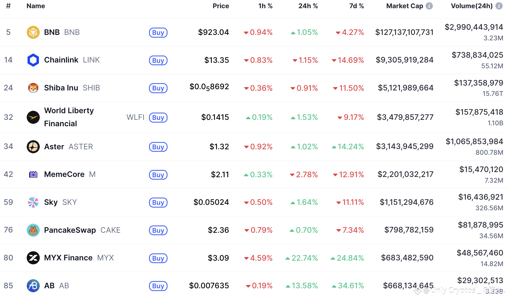 BNB Chain native perpetual DEXs Aster (ASTER) and MYX Finance (MYX) are showing particular strength this week, driven by their low float token dynamics and sustained on-chain trading demand.