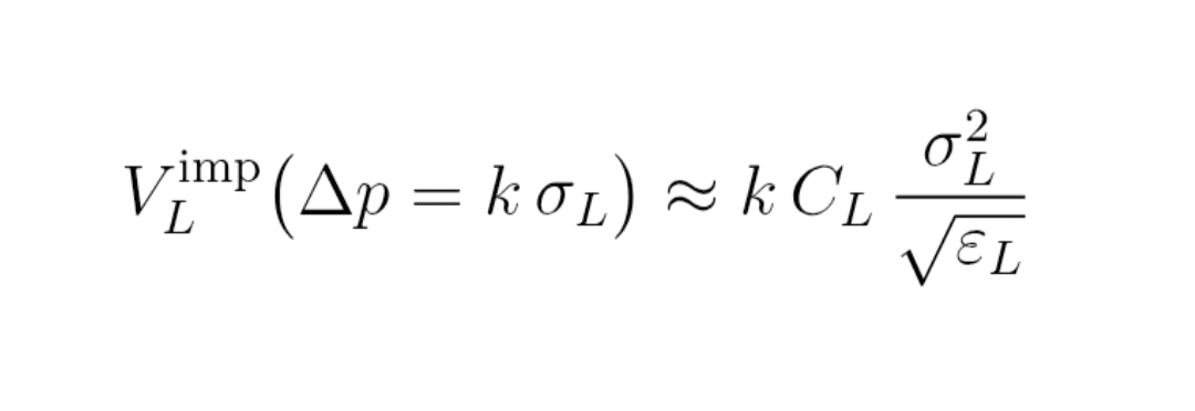 V_L^imp (Δp = k σ_L) ≈ k × C_L × σ_L² / √ε_L