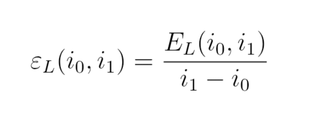 ε_L(i_0, i_1) = E_L(i_0, i_1) / (i_1 − i_0)