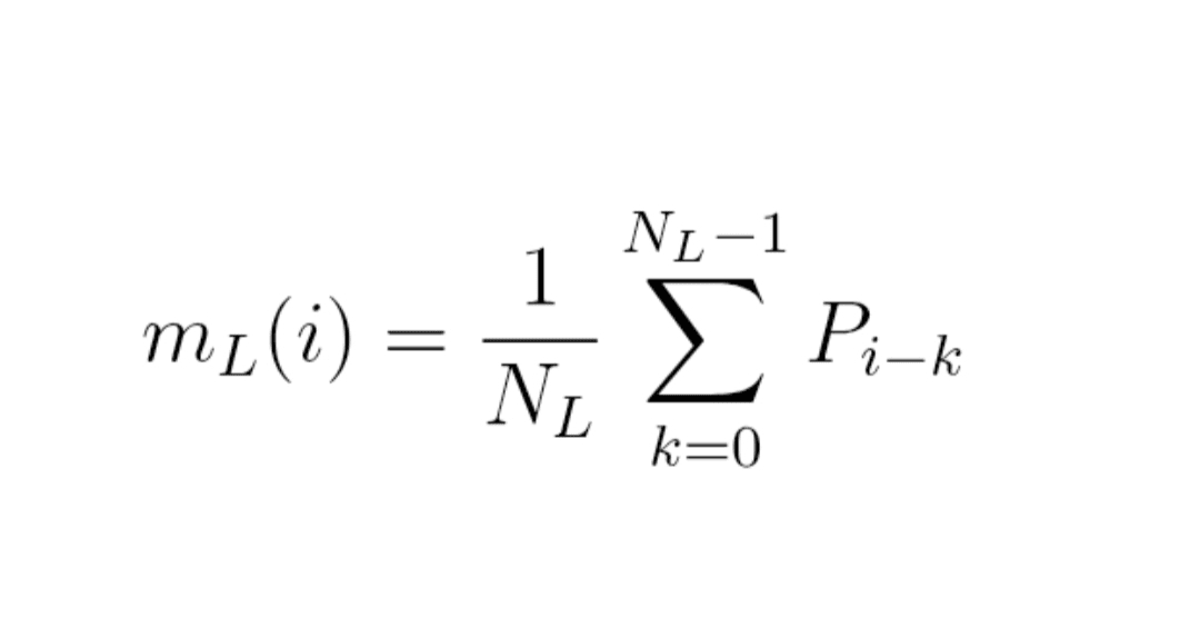 m_L(i) = (1 / N_L) × Summe für k von 0 bis N_L − 1 von P_{i − k}