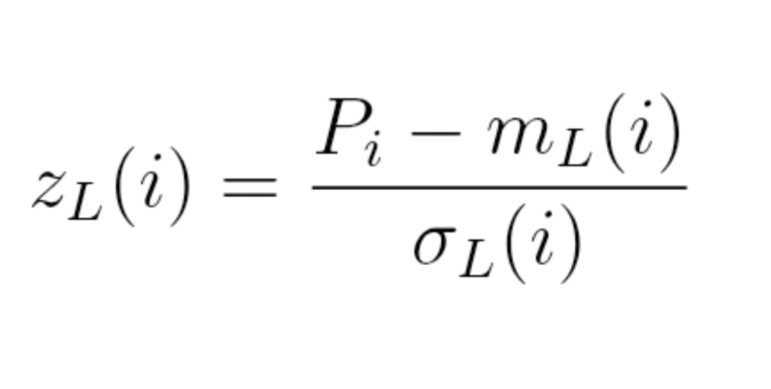 z_L(i) = (P_i − m_L(i)) / σ_L(i)