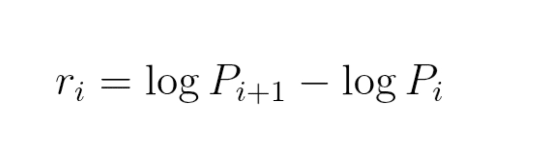 r_i = log(P_{i+1}) − log(P_i)