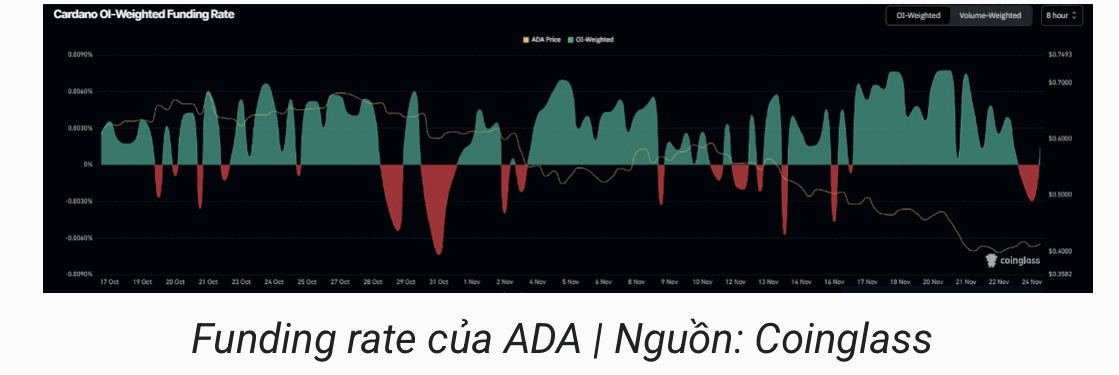 Nicht nur die Akkumulation durch Wale, sondern auch Daten aus dem Derivatemarkt zeigen, dass ADA bald in einen neuen Aufwärtstrend eintreten könnte. Die Funding-Rate von Coinglass spiegelt die Anzahl der Trader wider, die auf sinkende Preise setzen, die jetzt zurückgegangen ist, während die Wette auf ein bullisches Szenario überwiegt.