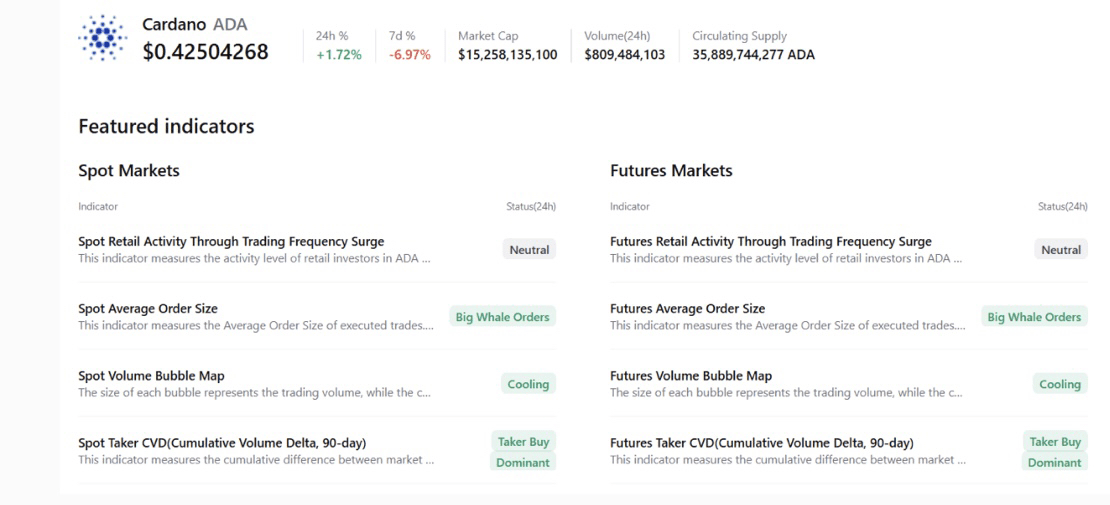 Konsolidierte Daten von CryptoQuant stärken weiterhin die positive Perspektive von ADA. Sowohl im Spot- als auch im Derivatemarkt erscheinen große Kaufaufträge von Walen häufiger, während Indikatoren zeigen, dass der Markt "abkühlt". Die Übermacht der Kaufkraft in diesem Kontext wird zu einem klaren Signal für eine mögliche Erholung.