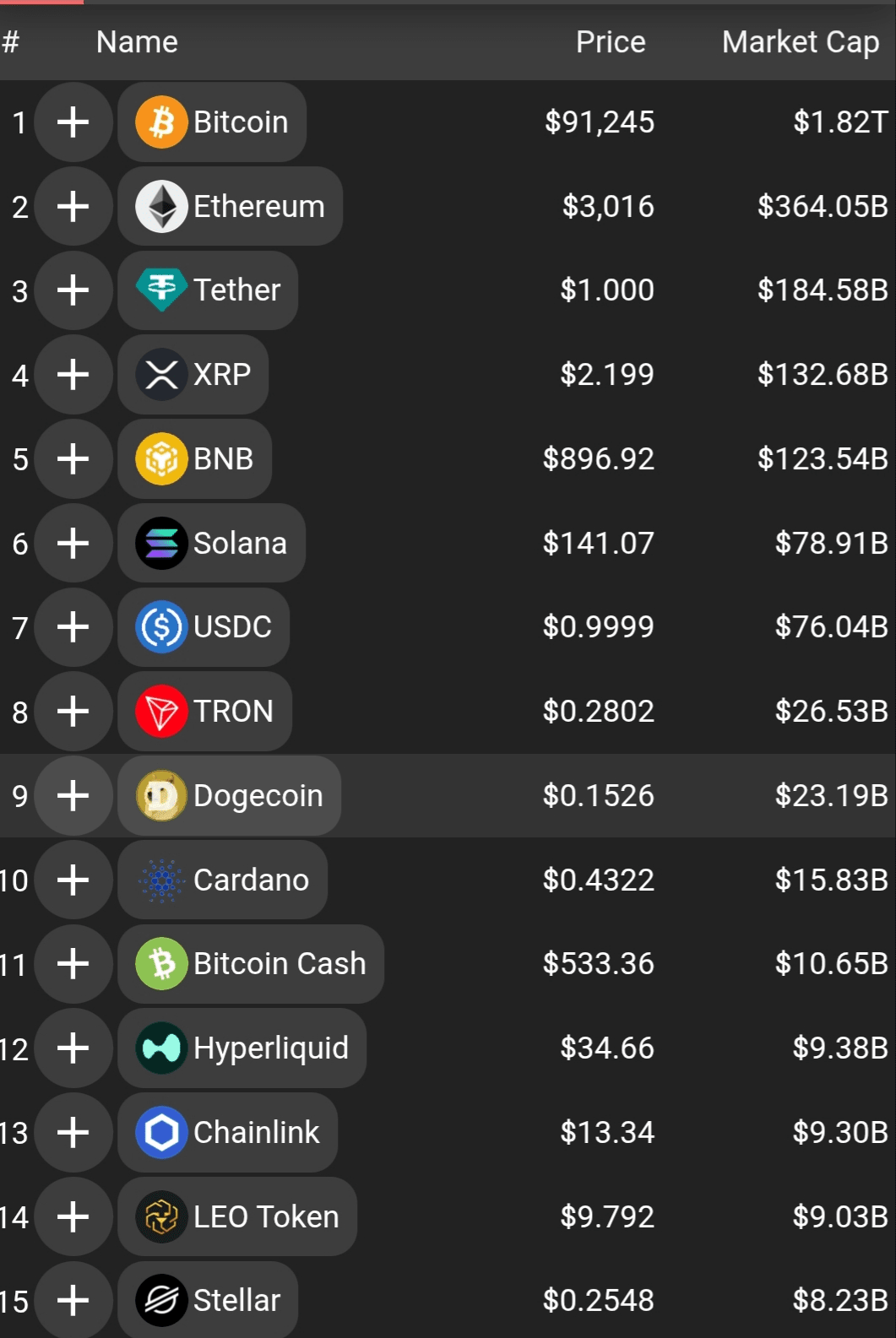 heute Top 15 Münzen Handelsvolumen